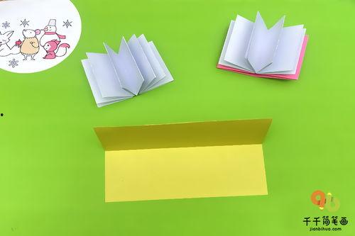 3. 制作封面:将彩纸展开,沿着对折线剪开一个小口,然后沿着对折线将彩纸翻折,形成一个封面。